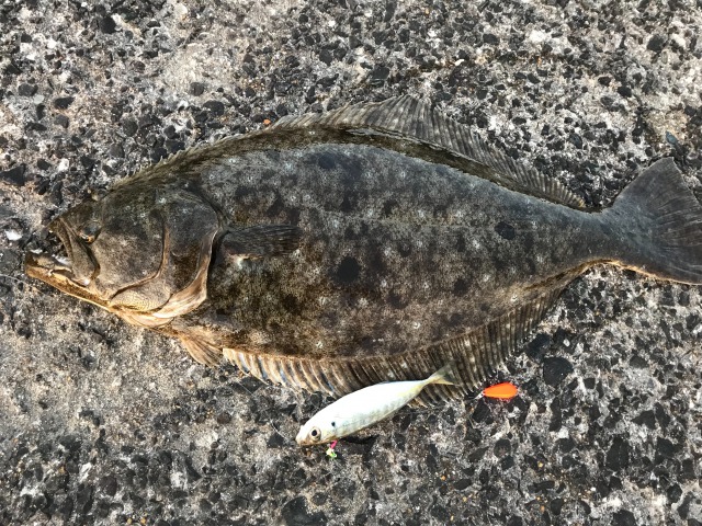 アジの泳がせ釣りをしていて、86センチの座布団ヒラメを釣り上げていましたww