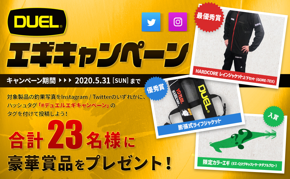 撮影した写真に、ハッシュタグ「#デュエルエギキャンペーン」を付けて投稿頂くと応募完了となります。