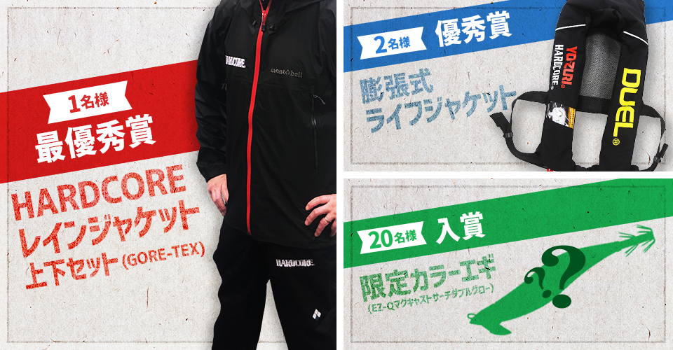 合計23名様へ「HARDCORE レインジャケット上下セット(GORE-TEX)(M/L/LLから選択できます)」をはじめとする豪華賞品をプレゼント!