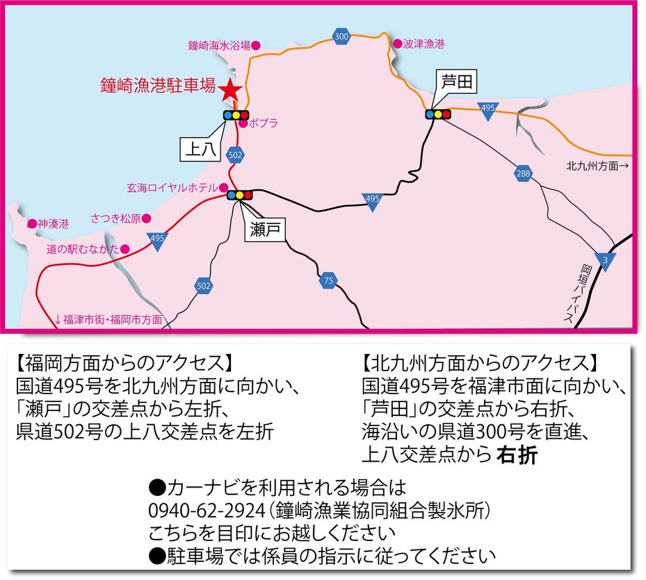 ※ナビに0940-62-2924(宗像漁業協同組合製氷所)を入力下さい。
