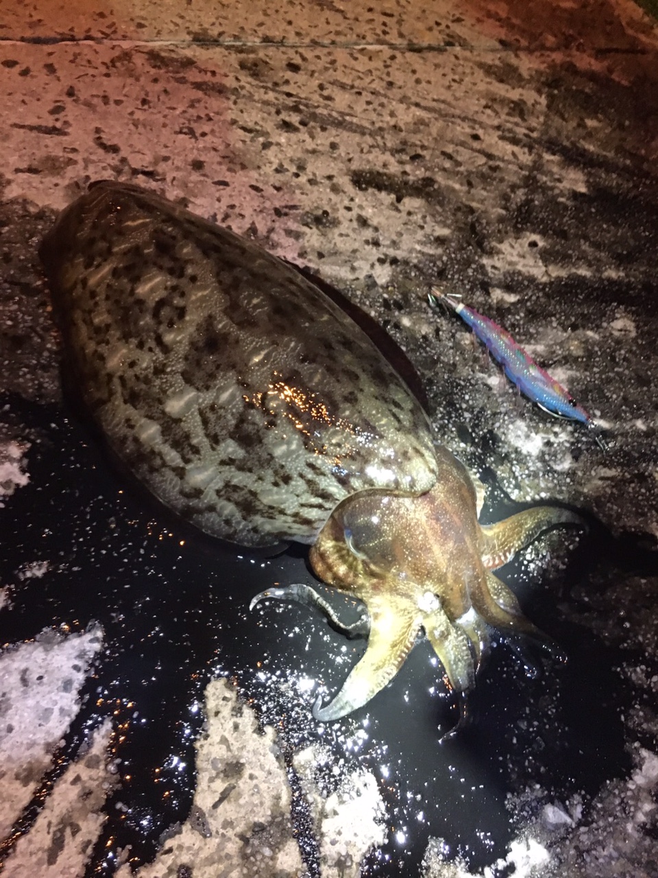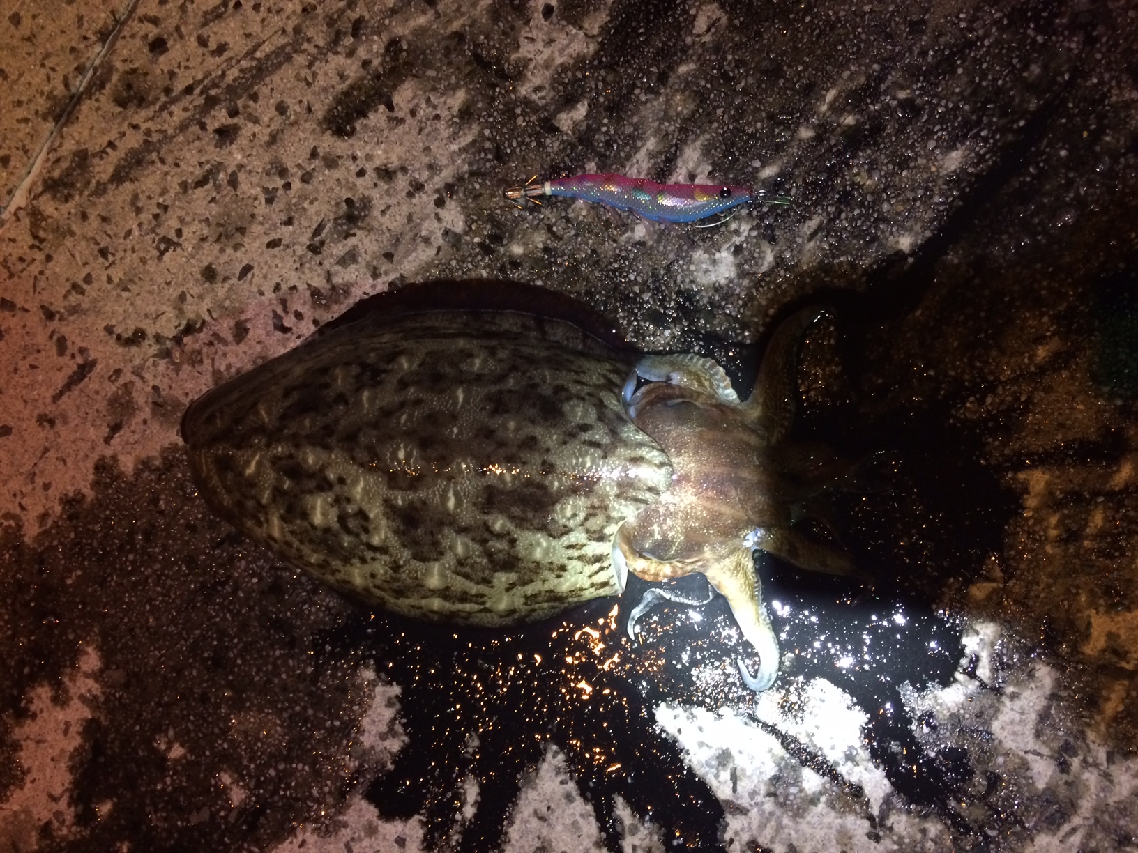 最後に、アタリに合わせて、イカがのってなくても諦めないでください。